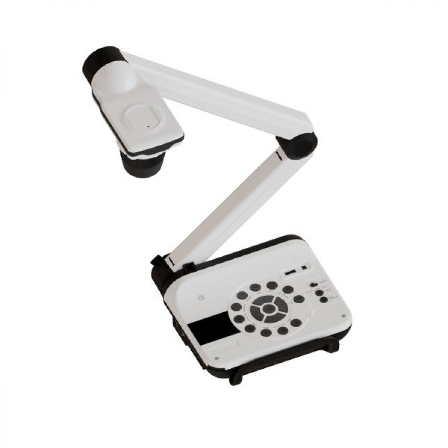 In der Praxis überzeugt die DC557 durch ihre robuste, dennoch kompakte Bauweise und den einfach zusammenklappbaren Arm, der den Transport zwischen Räumen erleichtert. Mit einem Gewicht von rund 1,9 kg lässt sich die Kamera problemlos mobil einsetzen oder sicher im Medienwagen verstauen. Die Bedienung ist intuitiv gehalten, sodass auch weniger technikerfahrene Lehrkräfte schnell produktiv arbeiten können. Über die mitgelieferte Fernbedienung und die klar strukturierte Tastenanordnung am Gerät sind Zoom, Fokus, Bild einfrieren oder Aufnahmen jederzeit direkt erreichbar.